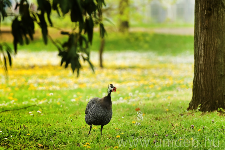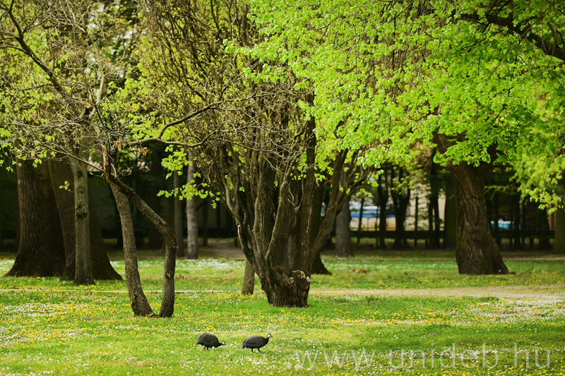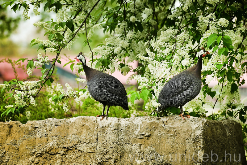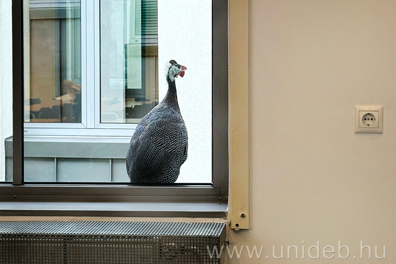 Szabadon és békésen él évek óta egyetlen Afrikából származó hagyományos házi baromfifajunk, a gyöngytyúk két példánya a Debreceni Egyetem Böszörményi úti campusán. Nem zavarja őket a nagy jövés-menés, az egyetemi forgatagban természetes otthonra leltek.