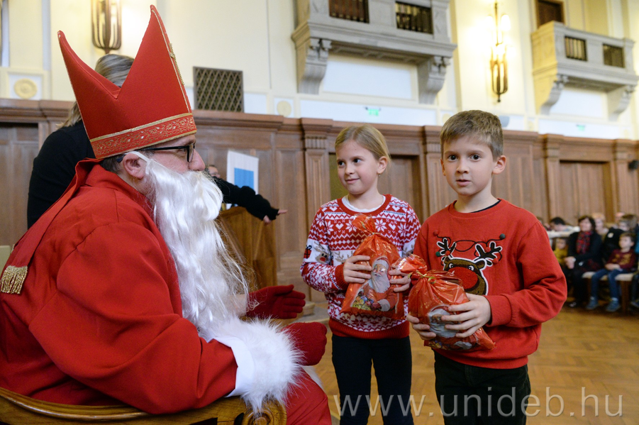 Dolgozók és családtagjaik várták izgatottan vasárnap a Főépület Aulájában, hogy vajon ebben az évben is ellátogat-e hozzájuk a Debreceni Egyetem Mikulása?