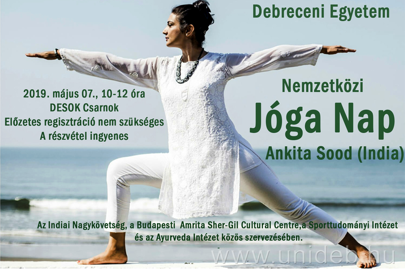 Hazánkban először rendez Nemzetközi Jóga Napot május 7-én, kedden 10 órakor a DE Sporttudományi Koordinációs Intézete az Ajurvéda Intézettel, a Budapesti Amrita Sher-Gil Cultural Centre-rel és az Indiai Külügyminisztériummal közösen. A rendezvényen Ankita Sood tart ingyenes órát a DESOK-ban.