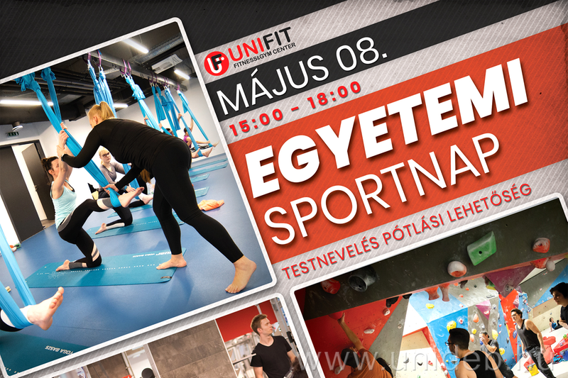 Május 8-án, szerdán 15 órától pedig az extrém sportok kedvelőinek szervez egyetemi sportnapot az intézmény az Unifit-tel. A rendezvényen többek között olyan programok közül választhatnak a hallgatók, mint a tabata, az SMR, a piloxing, vagy a builder. A fitness központban kipróbálható sportolási lehetőségek mellett triál- és ügyességi kerékpár pálya is várja a mozogni vágyó fiatalokat. A programokra a sportreg.unideb.hu oldalon lehet regisztrálni május 8-a, szerda 12 óráig. A részvétel itt is ingyenes és akár még testnevelés órát is pótolhatnak vele a hallgatók.