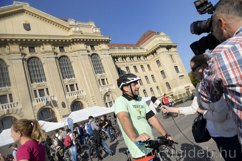 Egyetemi és városi polgárok közösen vettek részt a hagyományteremtő szándékkal megszervezett bringanapon. A biciklisek az Egyetem téren gyülekeztek, hogy a köszöntők után eltekerjenek a Kassai úti, majd a Böszörményi úti campusra. A mini kerékpártúra alkalmat adott arra is, hogy a résztvevők javaslatot tegyenek a debreceni kerékpárút-hálózat fejlesztésére.