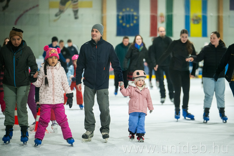 A hagyományos télbúcsúztató, tavaszköszöntő rendezvény helyszíne ezúttal a jégcsarnok 1-es pályája volt, ahová folyamatosan érkeztek korcsolyázni vágyó gyermekeikkel, unokáikkal az egyetemi dolgozók.