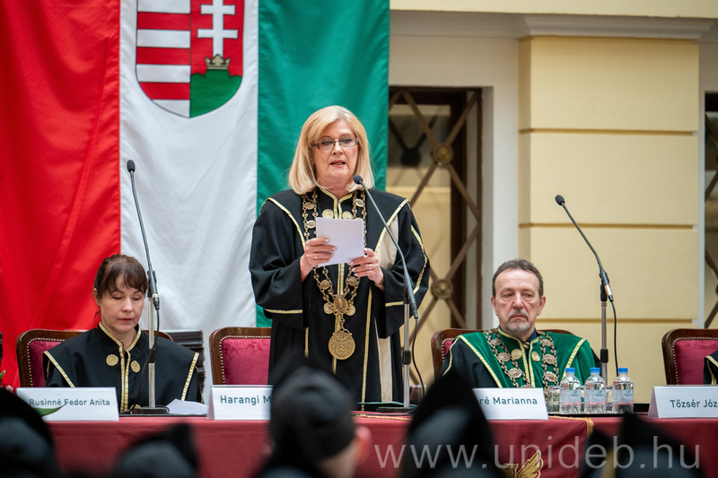 A büszkeség a leginkább helyénvaló érzés abban a pillanatban, amikor a leendő segítő szakemberek életük legnagyobb kihívással teli időszakát zárhatják le azzal, hogy kezükbe veszik diplomájukat – mondta ünnepi beszédében Móré Marianna, a Debreceni Egyetem Egészségtudományi Kar dékánja a pénteken tartott téli diplomaosztón.