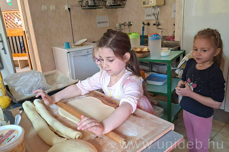 A zárónapon a gasztronómia és a kézművesség került előtérbe. Az óvoda épületét belengte a frissen sült kalács illata, miközben az udvaron a hagyományokat követve hagymahéjban főttek a gyönyörűen berzselt, azaz levélrátéttel díszített tojások. A gyerekek legnagyobb örömére a teraszon nyuszisimogató is várta őket, a nap végére pedig elkészültek azok a változatos technikával díszített tojások is, amelyek az óvoda tojásfáját és a locsolók ajándékkosarát ékesítik majd.