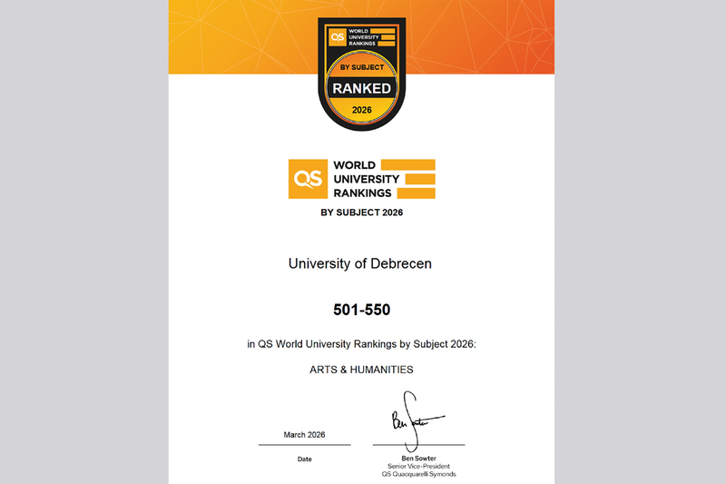 Jelentős sikert könyvelhetett el a Debreceni Egyetem Bölcsészettudományi Kara, hiszen a legfrissebb Quacquarelli Symonds 2026-os szakterületi rangsorában, Arts and Humanities kategóriában a szakemberek a világ legjobb 550 intézménye közé sorolták.