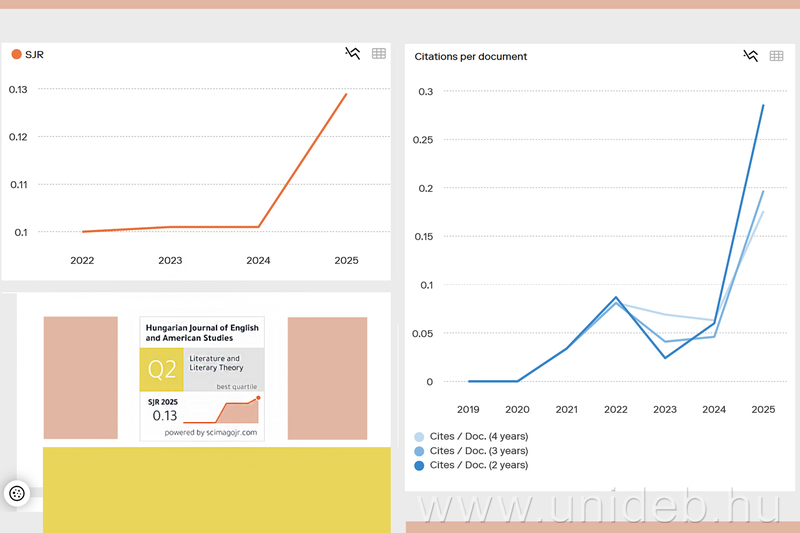 Jelentős előrelépést ért el a Debreceni Egyetem Bölcsészettudományi Kar Angol-Amerikai Intézetének folyóirata a Scimago Journal & Country Rank minősítő rangsorában. Az évente két alkalommal megjelenő Hungarian Journal of English and American Studies két kategóriában Q2-es, további két területen pedig Q3-as minősítést kapott, tovább erősítve ezzel nemzetközi ismertségét és presztízsét.