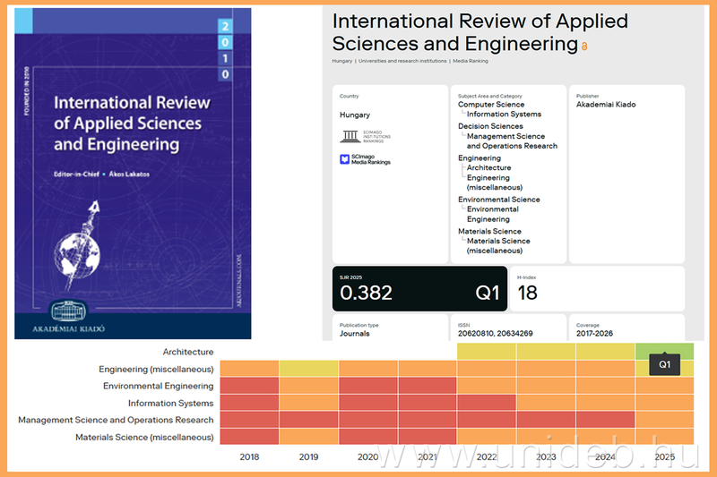 Az International Review of Applied Sciences and Engineering (IRASE) az architecture kategóriában a Q1, engineering területen a Q2, a management science and operational research területen pedig a Q3-as besorolásig lépett előre a Scimago Journal and Country Ranknél.